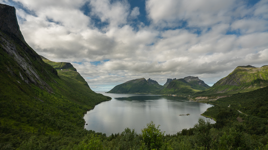 From the viewpoint above the Bergsbotn village, you have a lovely view of the idyllic fjord below.