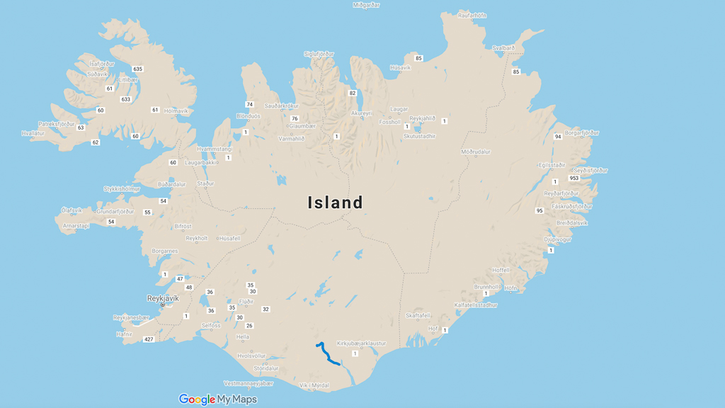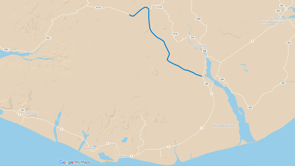 This track, also known as Öldufellsleið, starts halfway between Vík and Kirkjubæjarklaustur.