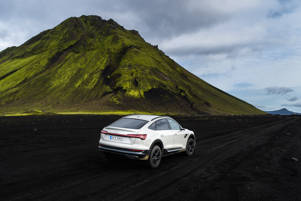 The air suspension of the e-tron helps a lot in the highlands. If you lift the car by using the offroad drive select mode it has enough ground clearance for nearly all tracks. And due to the nature of the air suspension system even fully loaded the ground clearance is not reduced.