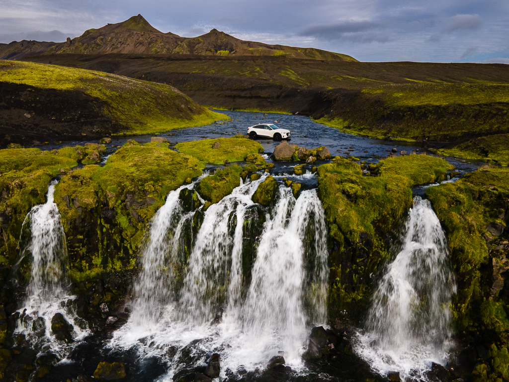 The main limit of the Audi e-tron in Iceland is its wading depth. According to the manual, the official limit is 300 mm, although Audi India specifies 500 mm for the e-tron (see here). Many of the fords in Iceland are deeper. There is no real workaround for this. Check the water depth by using wading trousers and turn around if it’s too deep or use a different car.