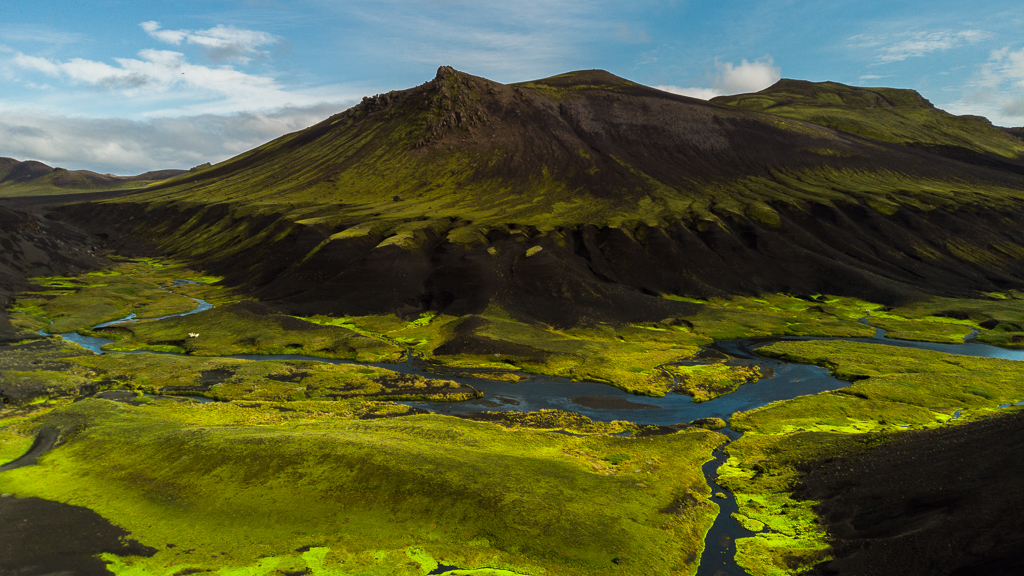 It is one of the most iconic mountains in Iceland with a perfectly conical shape, covered in bright green moss, standing alone in the black sand desert.