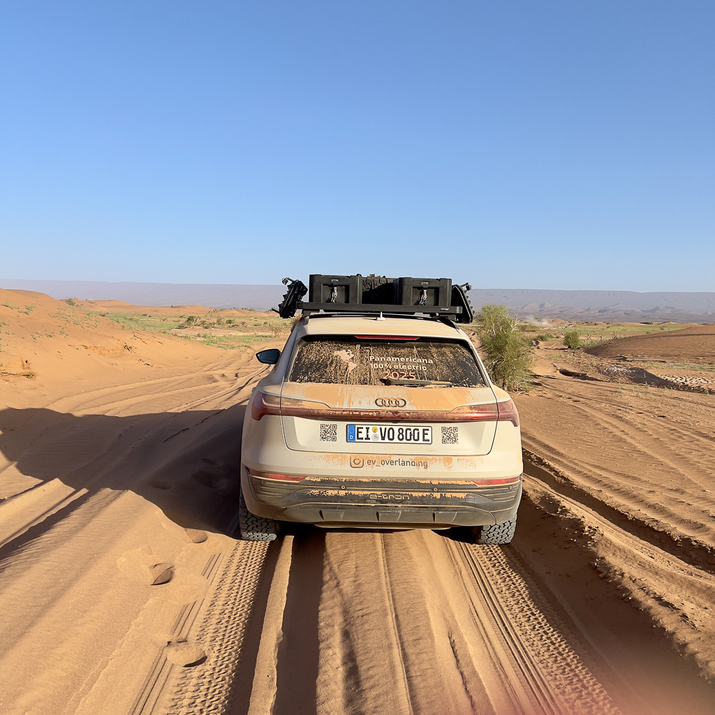 Altogether this desert crossing was really a fun experience. Traction in soft sand was never a big problem for my Audi Q8 e-tron. It’s a beast in the dunes. But energy consumption definitely is a challenge under these conditions. But it’s fascinating what’s already possible with the current generation of EVs. With next-generation battery technology or smaller/lighter onboard solar charging concepts, there will be no limits for EVs in the future.