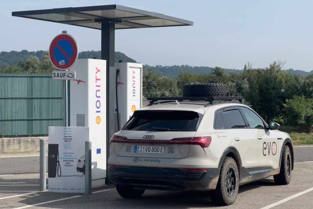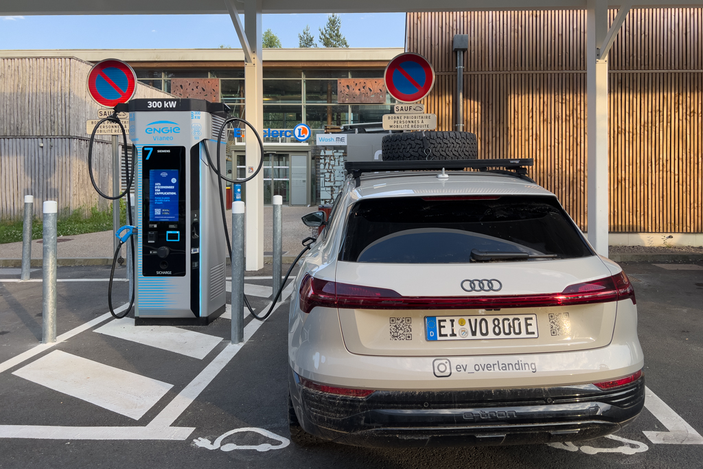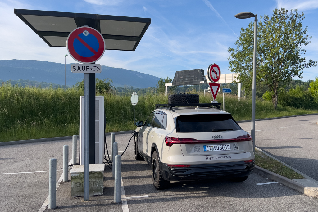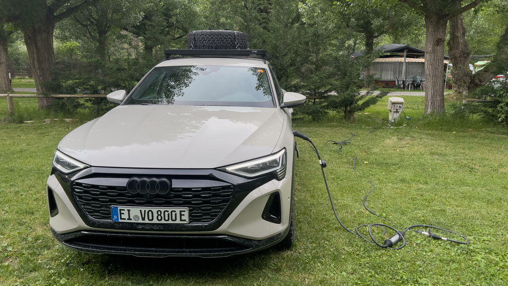 Directly at the campsite is also a DC fast charger. We charged the Audi to 80% for a quick start the next morning.