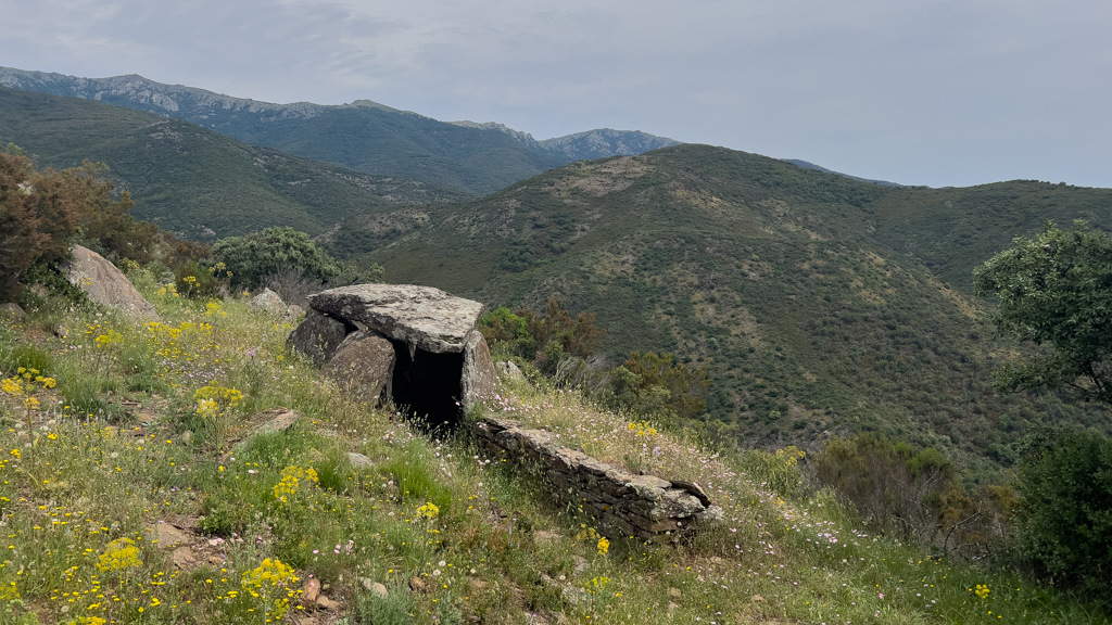 About halfway through the track, we stopped at the Dolmen de Les Morelles, a prehistoric burial chamber.