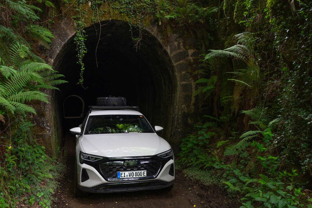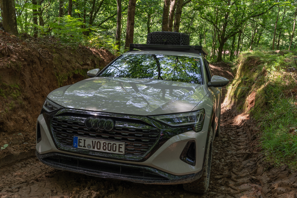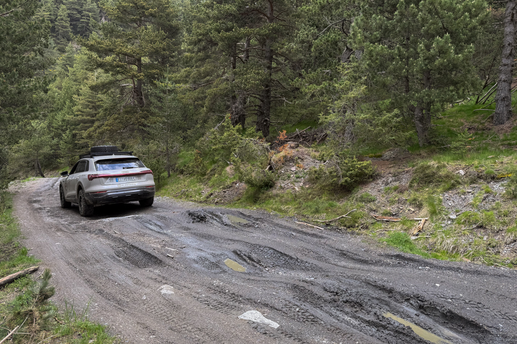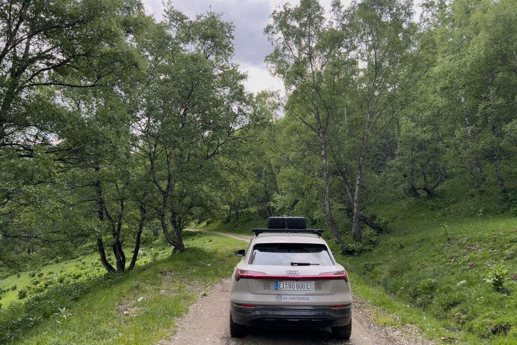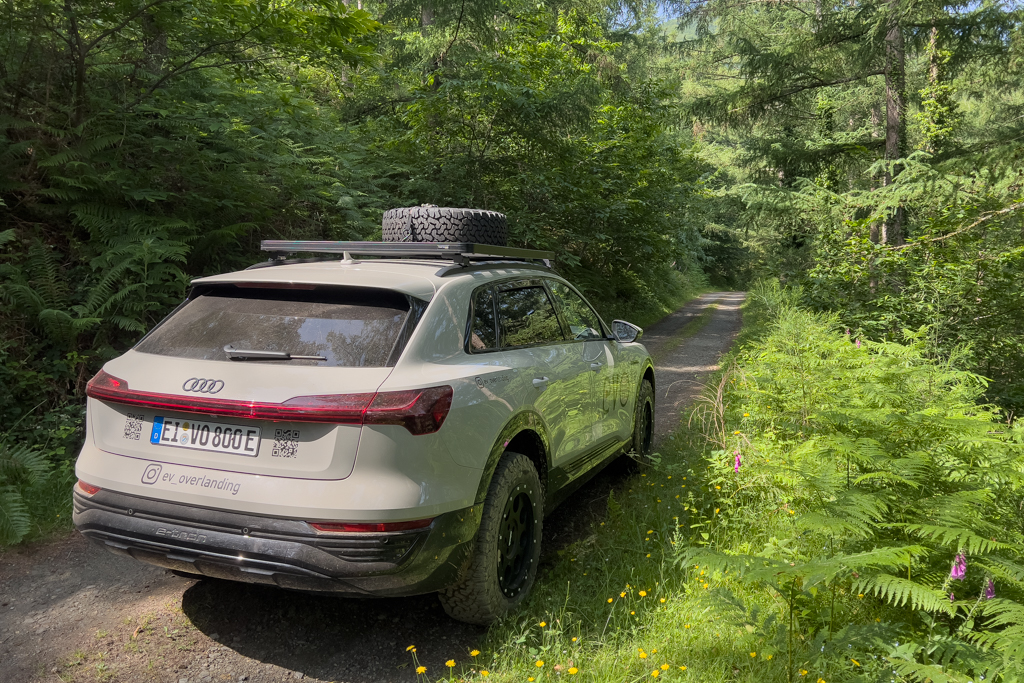 The combination of driving through the mud and some ascents led to an average energy consumption of 87.4kWh/100km on the first section of this track. Even for my Audi, that’s a high value I rarely see.