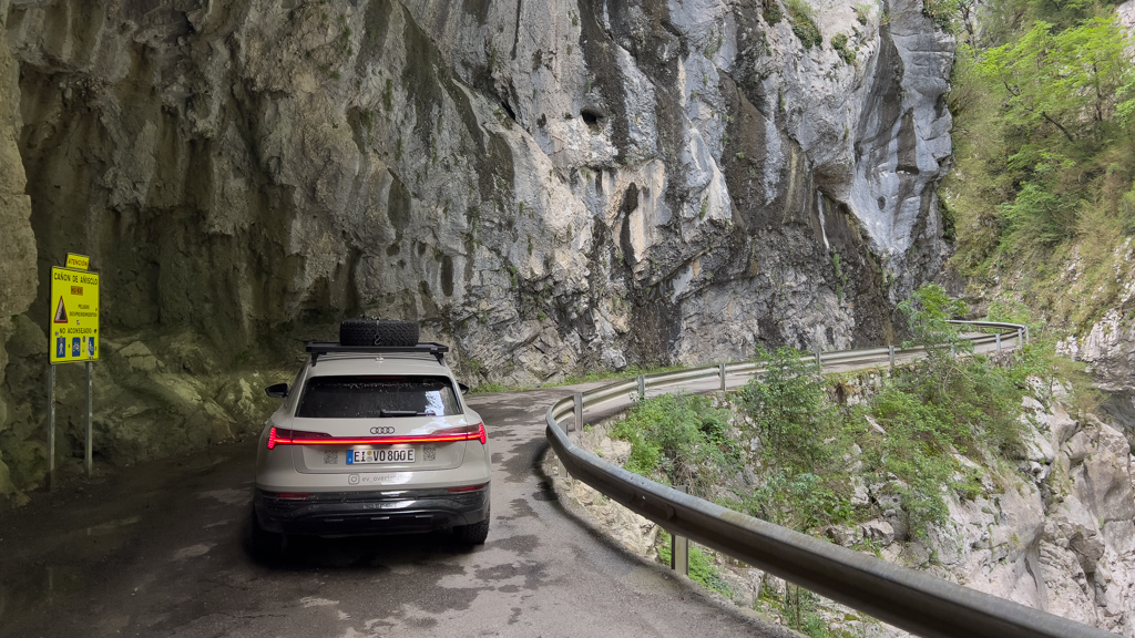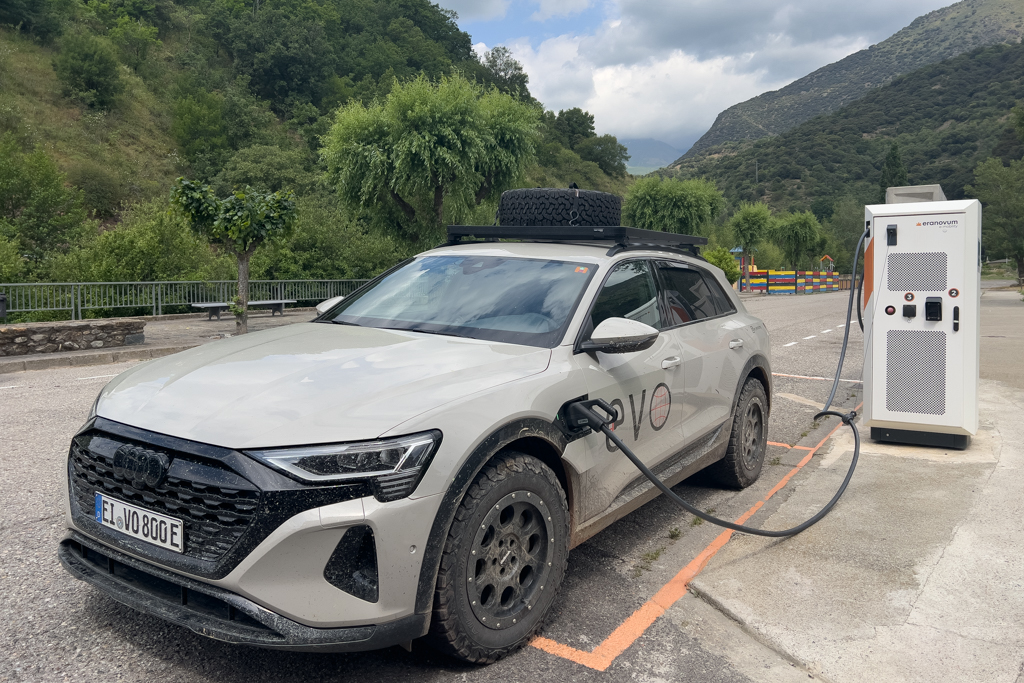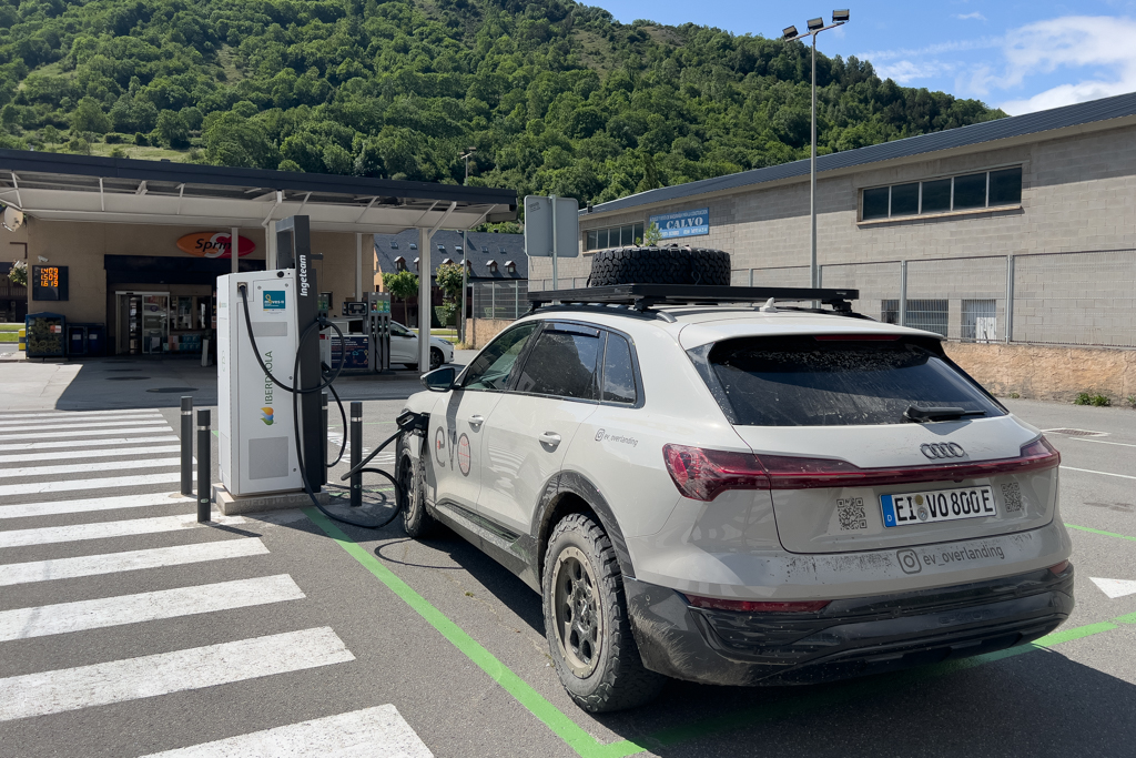 At the end of the track in Ribes de Freser, we charged the Audi to 80% at a fast charger in the village.