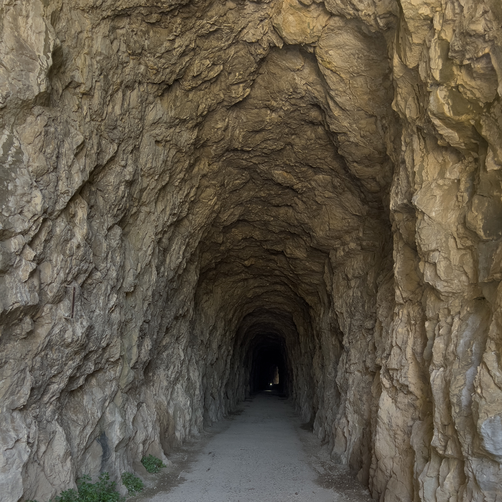 The fun part of this trail is that it leads through a couple of dark tunnels. A small flashlight is therefore recommended for the hike.