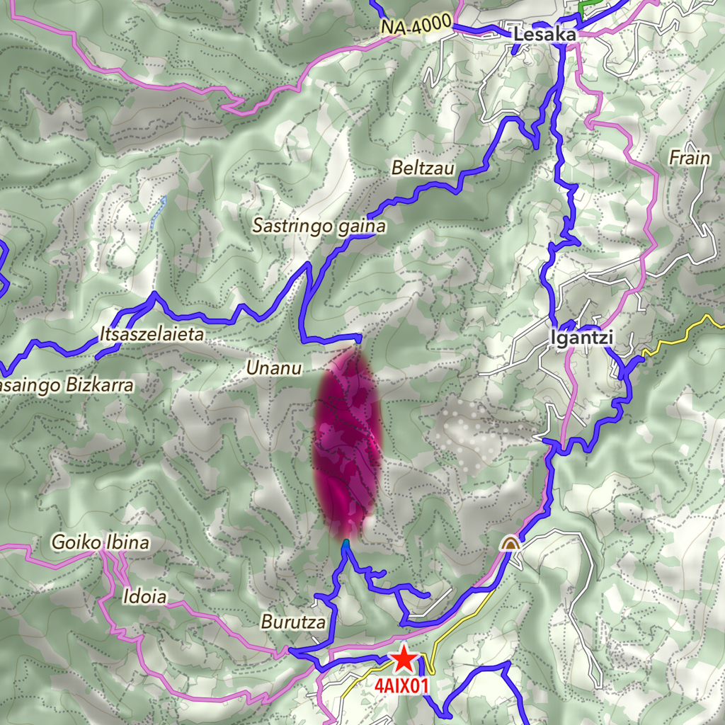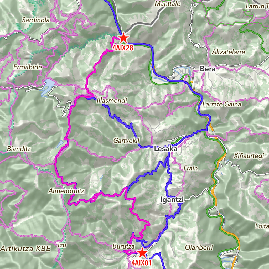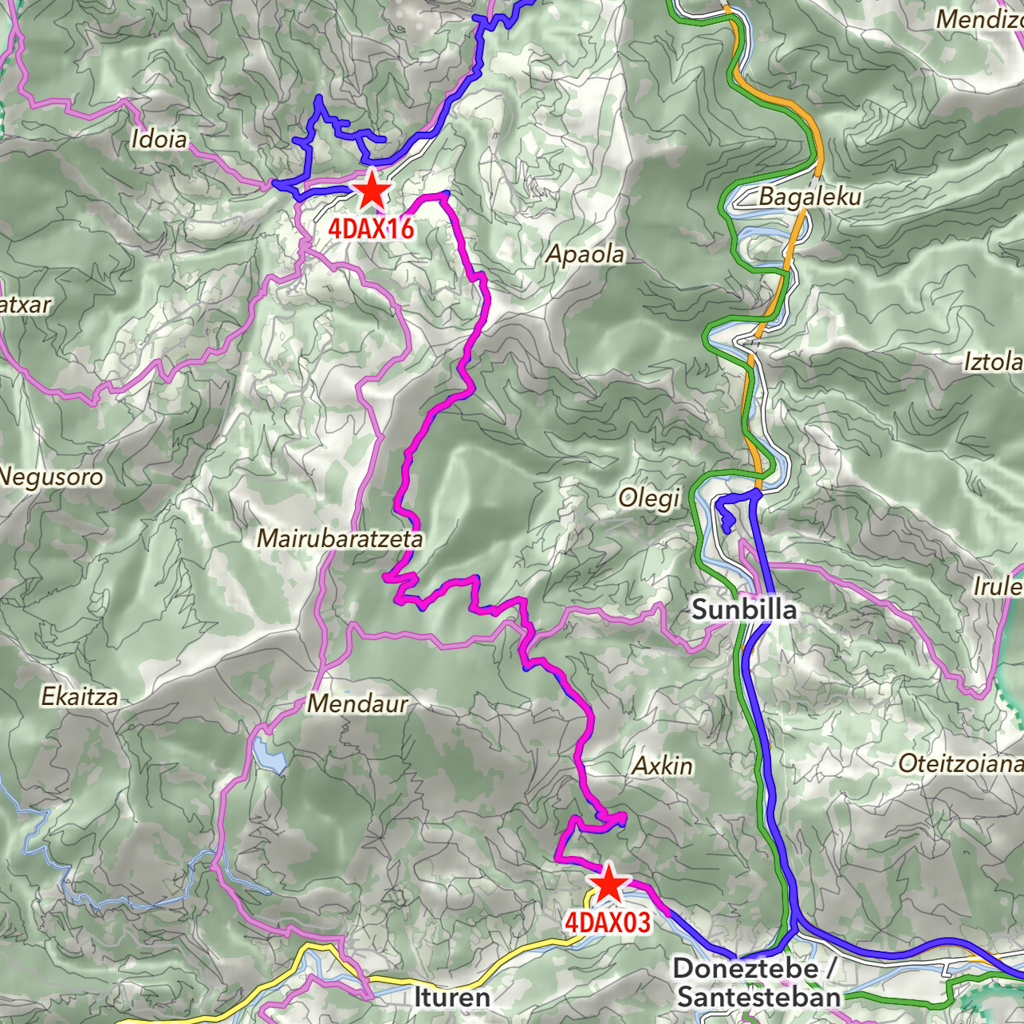 Therefore, we decided to slowly reverse and turn around. We then drove a detour via Igantzi and Lesaka to get back on the track as shown on the map below.