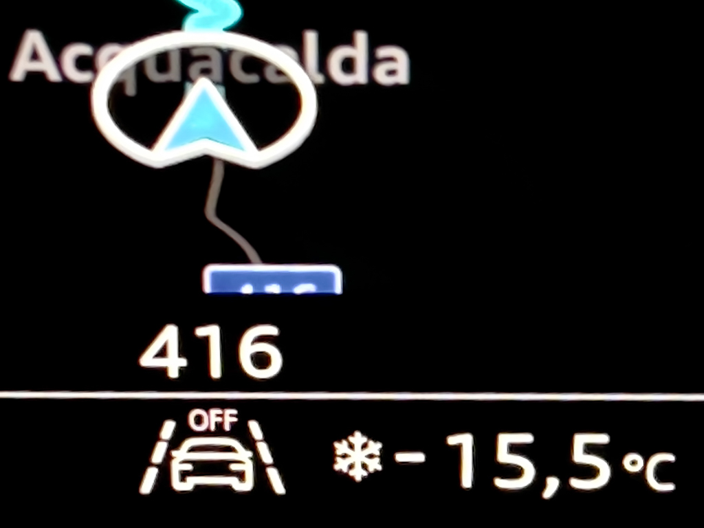 The next problem was that the highway across Switzerland was at some point completely blocked. To avoid this blockage, my Audi navigation decided to lead me instead across a couple of very small high-altitude mountain passes. I was driving on completely snow-covered roads for hours, and the temperature dropped to -16° C.