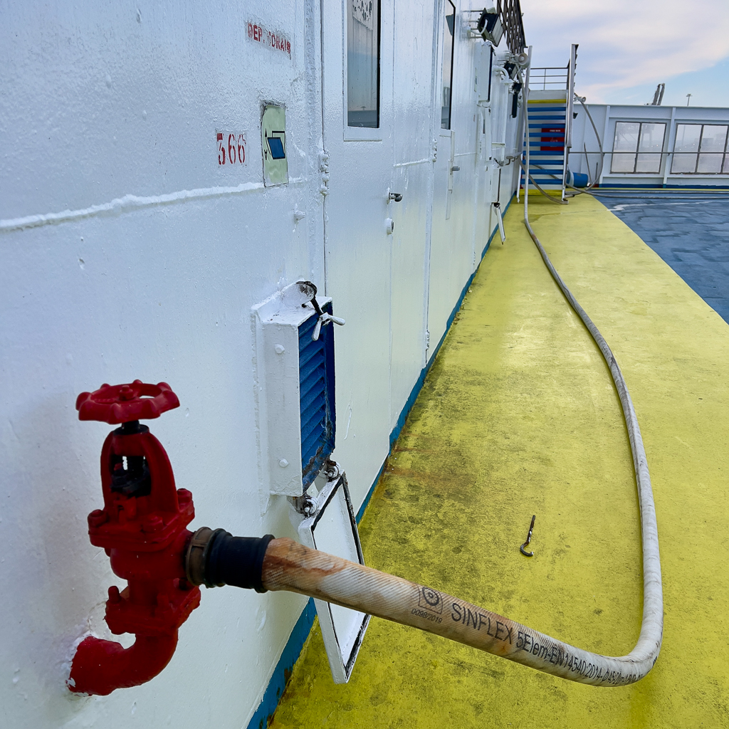 I decided to wander around a bit on the ship and found many signs of the firefighting operation last night.