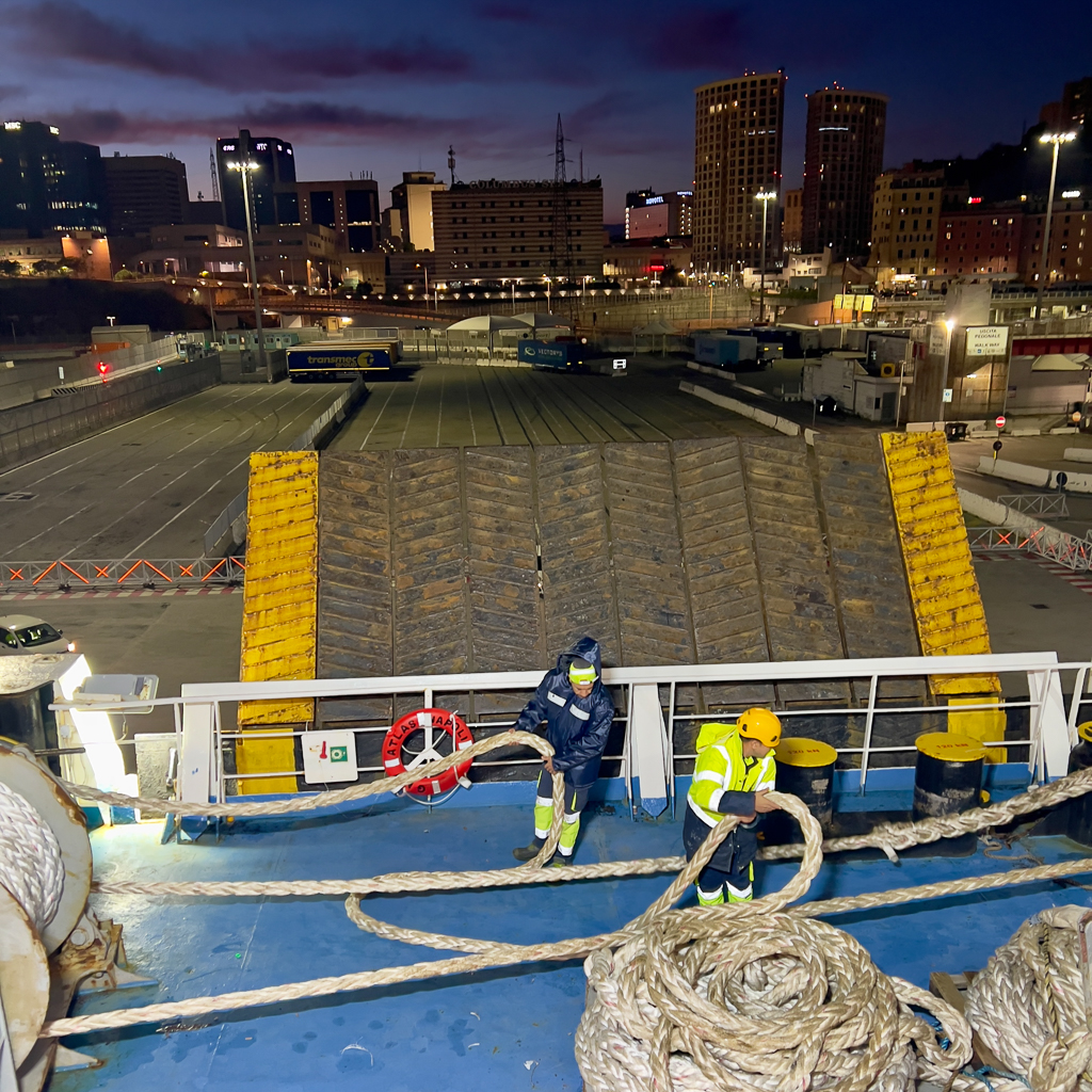 Just after sunset, the Atlas was ready to leave the port of Genova.