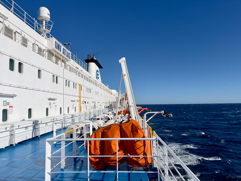 Due to the strong wind, the ferry now had an additional delay of around 15 hours. We are supposed to arrive in Tanger on Friday morning, 36 hours later than originally scheduled.