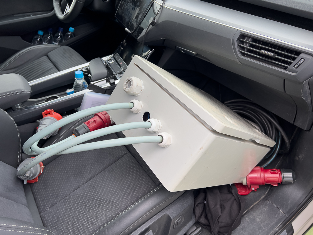 At the lower parking lot is a 3-phase 16A CEE connector, which was used by Hans, using his NRG Kick.