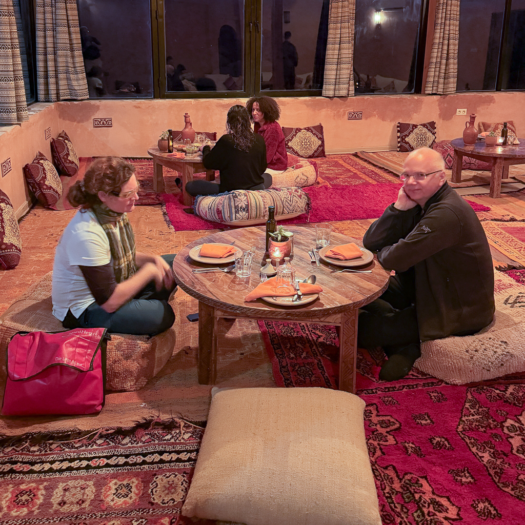 Later, we met with Silvia (see last post) at the Atlas Kasbah and discussed some details of the expedition with her. Some sections further south will be quite challenging regarding charging infrastructure. Let’s see if we will manage to get 4 cars through this section in a reasonable amount of time.