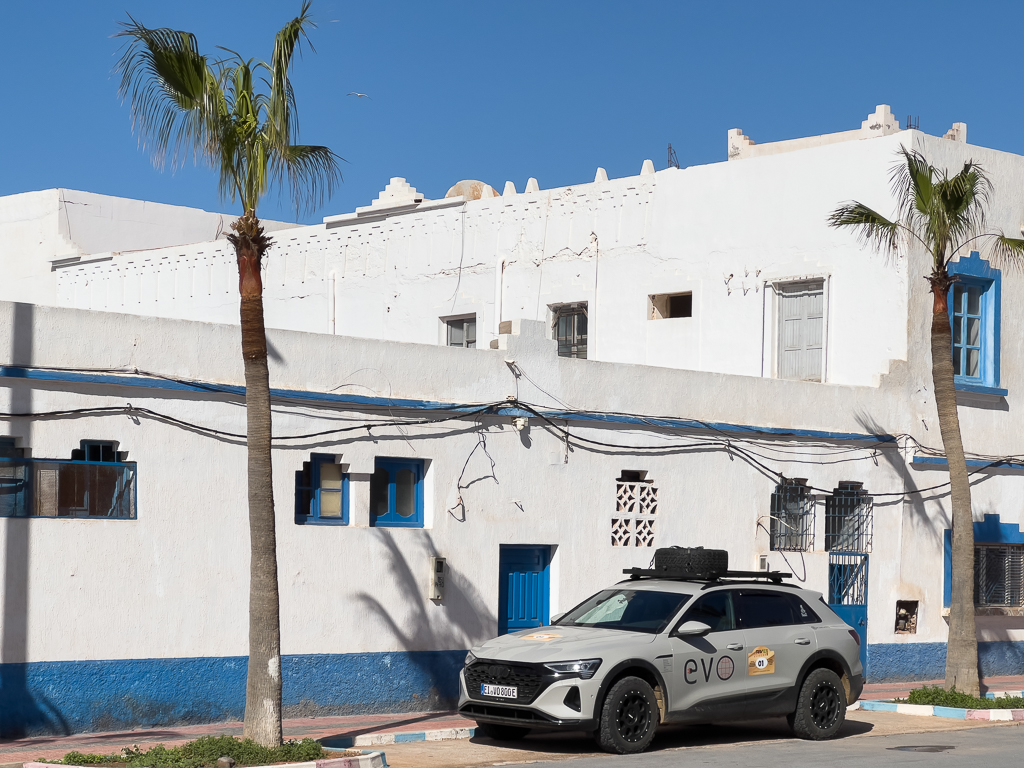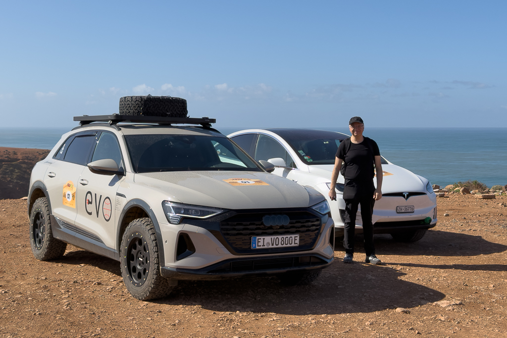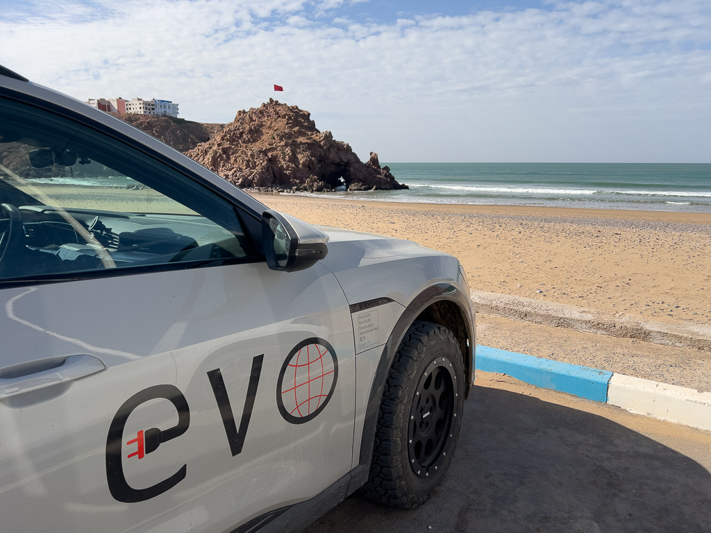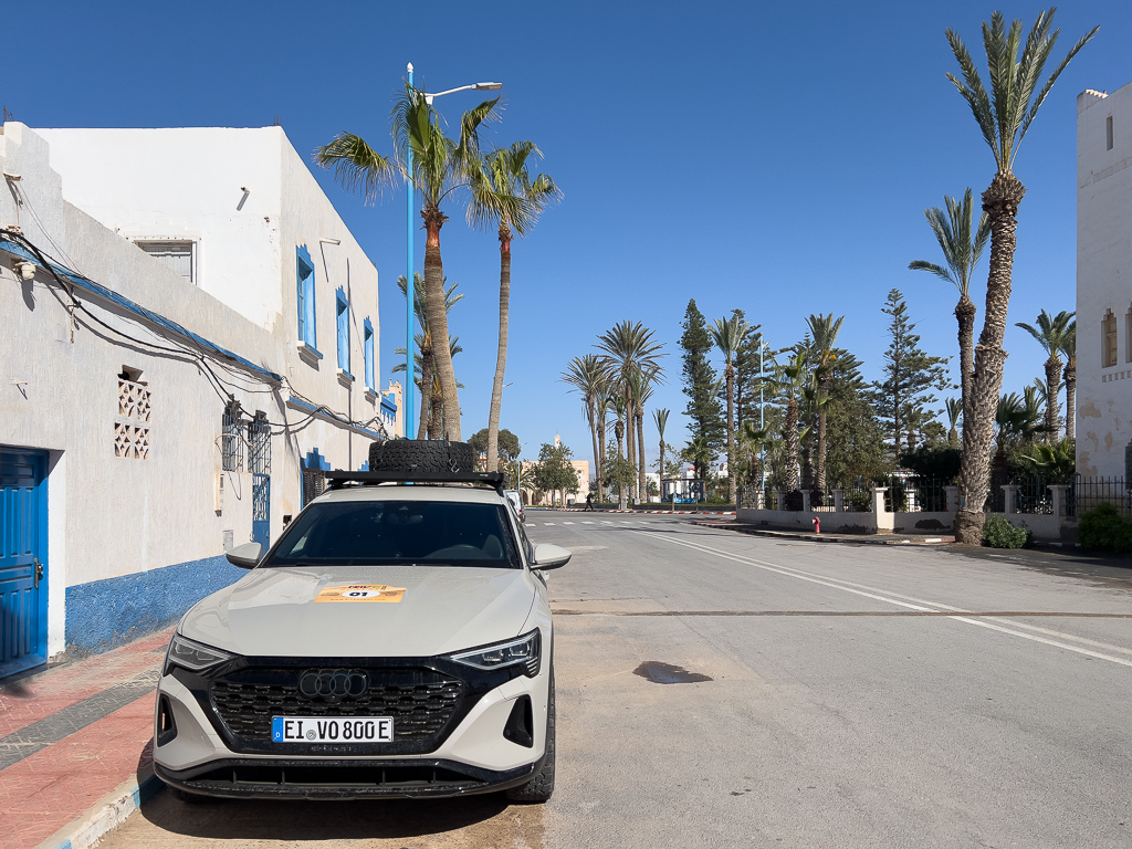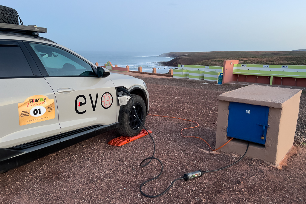The electricity infrastructure was surprisingly good there. There was a 16A CEE connector (blue, 3 pins, single phase) that we could use for charging our cars with 3,2 kW. Not bad at all for a campground in Morocco.