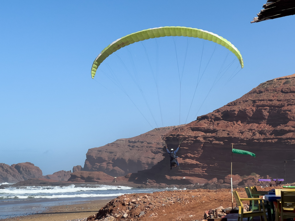 While we were eating pizza in the campground in Mirleft, Hannah wrote me a WhatsApp message asking me if everything was good and where I was at the moment. In addition, she sent me her location. She was just 900m away at a beach next to our campground. How crazy is this?