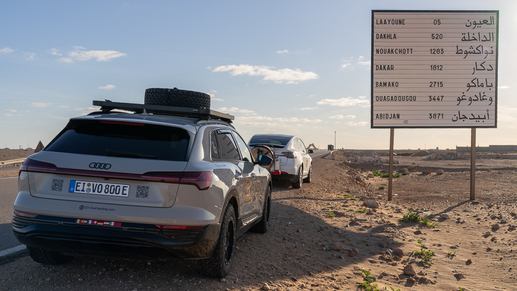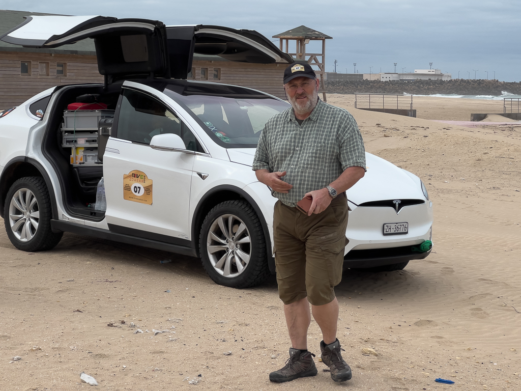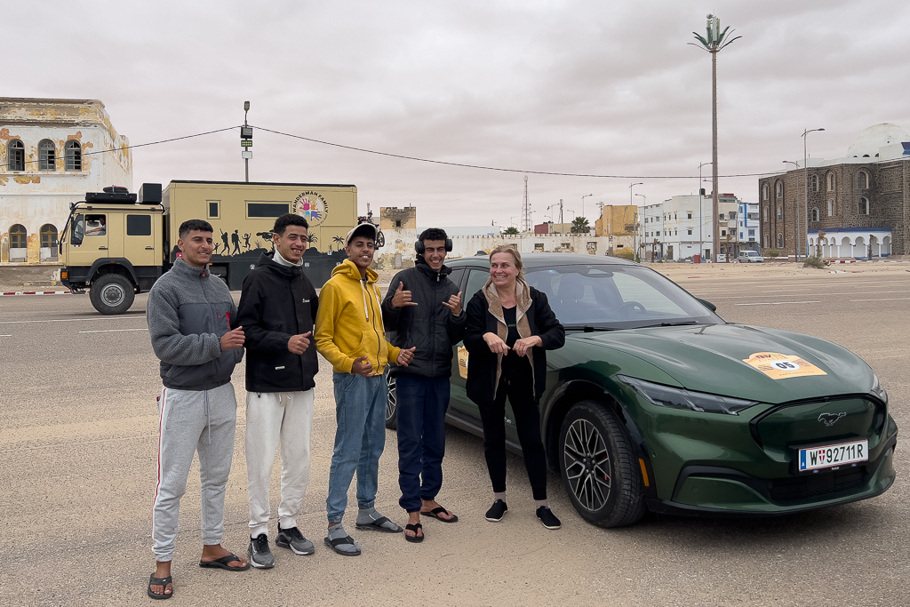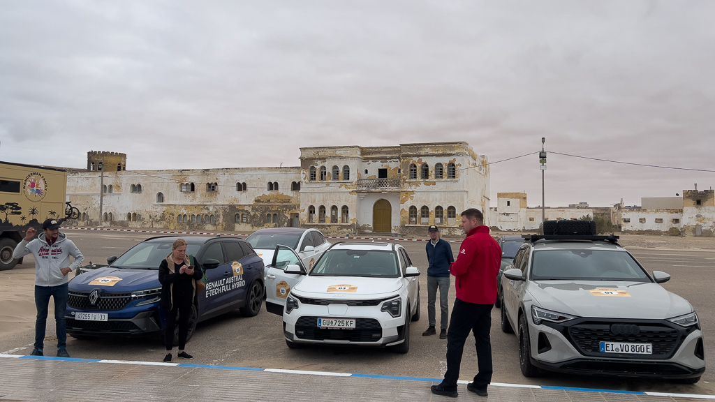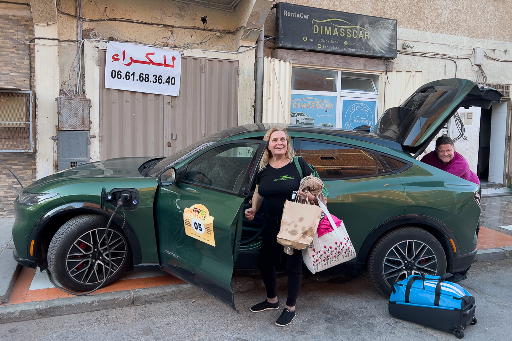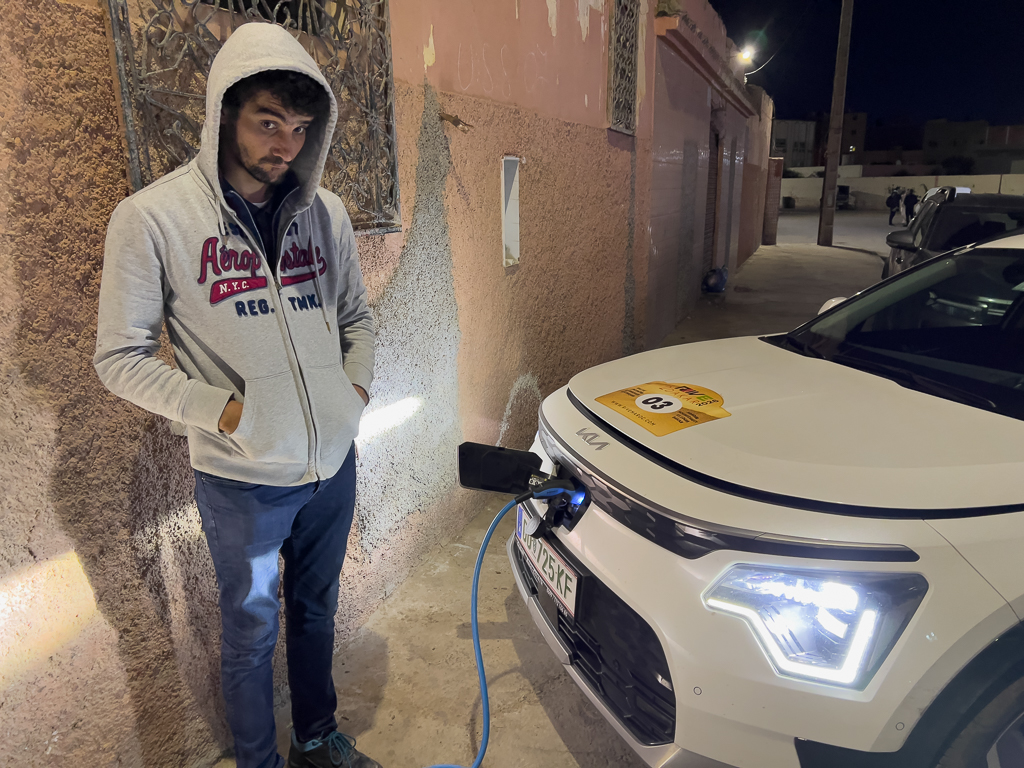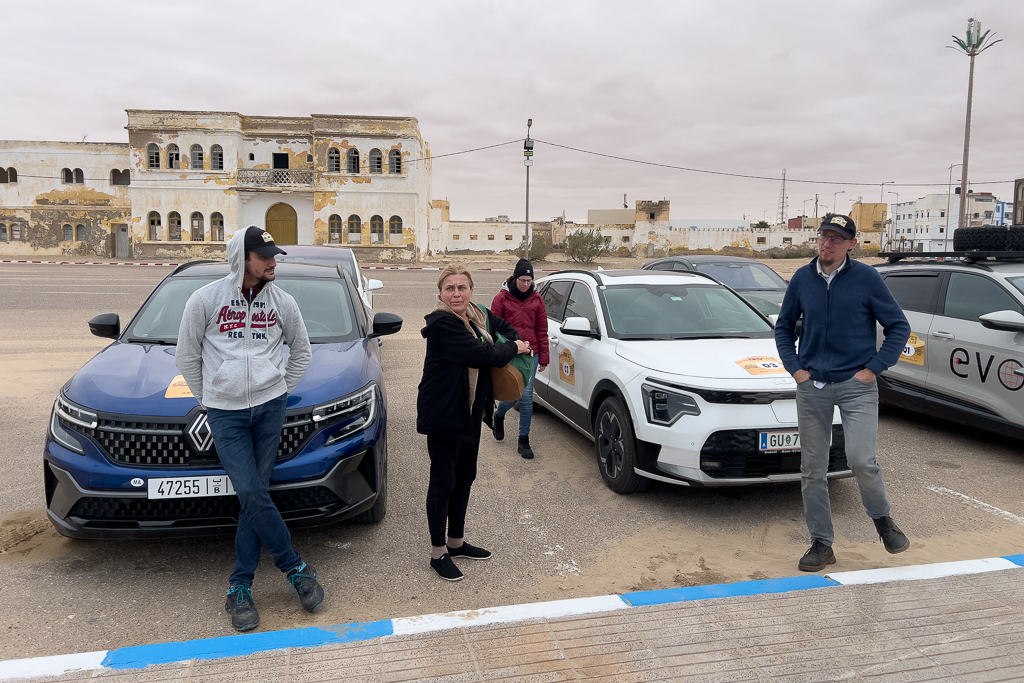 The surroundings of the hotel were not very nice. Beggars approached us while we set up the charging equipment for the other cars. But sadly, there isn’t a good alternative for charging in Laâyoune at the moment. Silvia and Ayoub have planned to check out potential alternatives on their way back to Morocco.