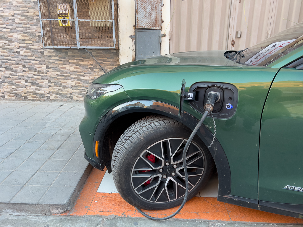 There is a Type 2 Kilowatt charger (22kW) at the hotel, where we plugged in the Ford Mustang.