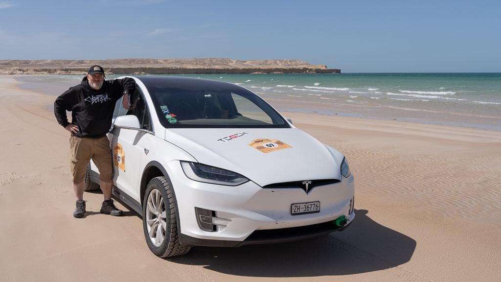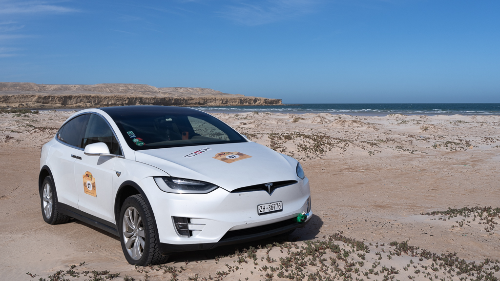 But it wasn’t sufficient. At least not for a quick recovery. Since we were accompanied on our exploration through the national park by local chief and guide Boa, we used his Hilux truck to pull the Tesla out of the sand.