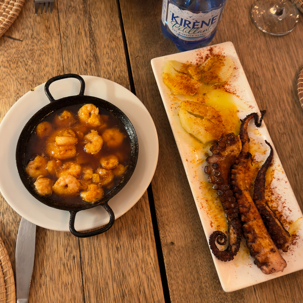 As appetizers, we had shrimps in garlic and octopus with paprika powder.