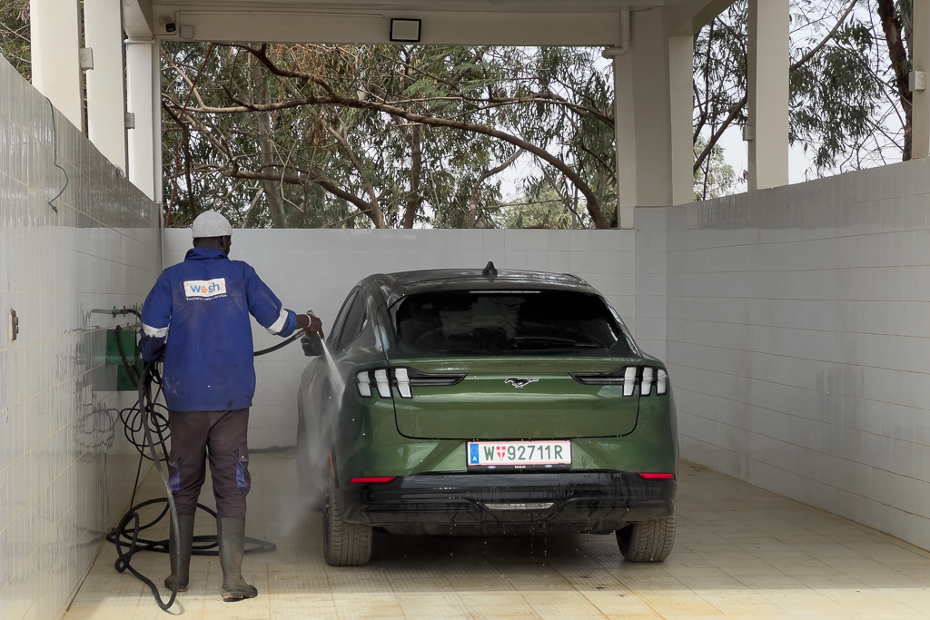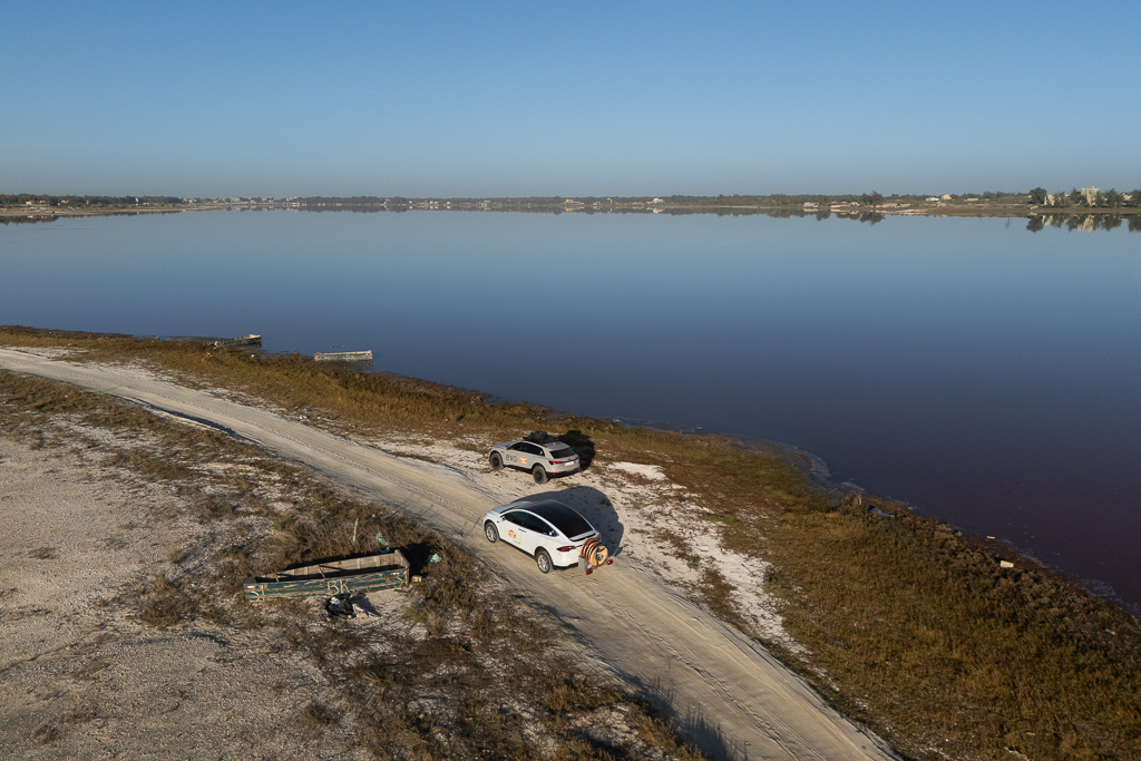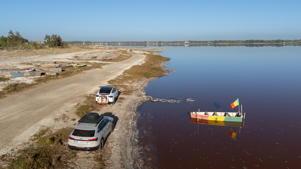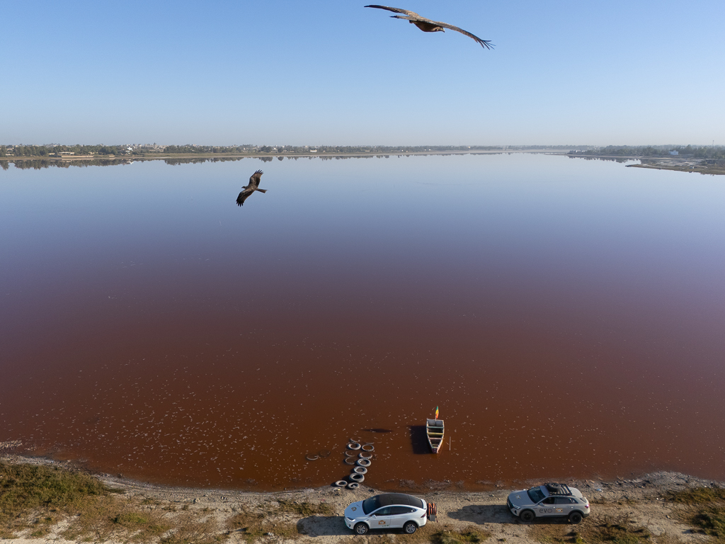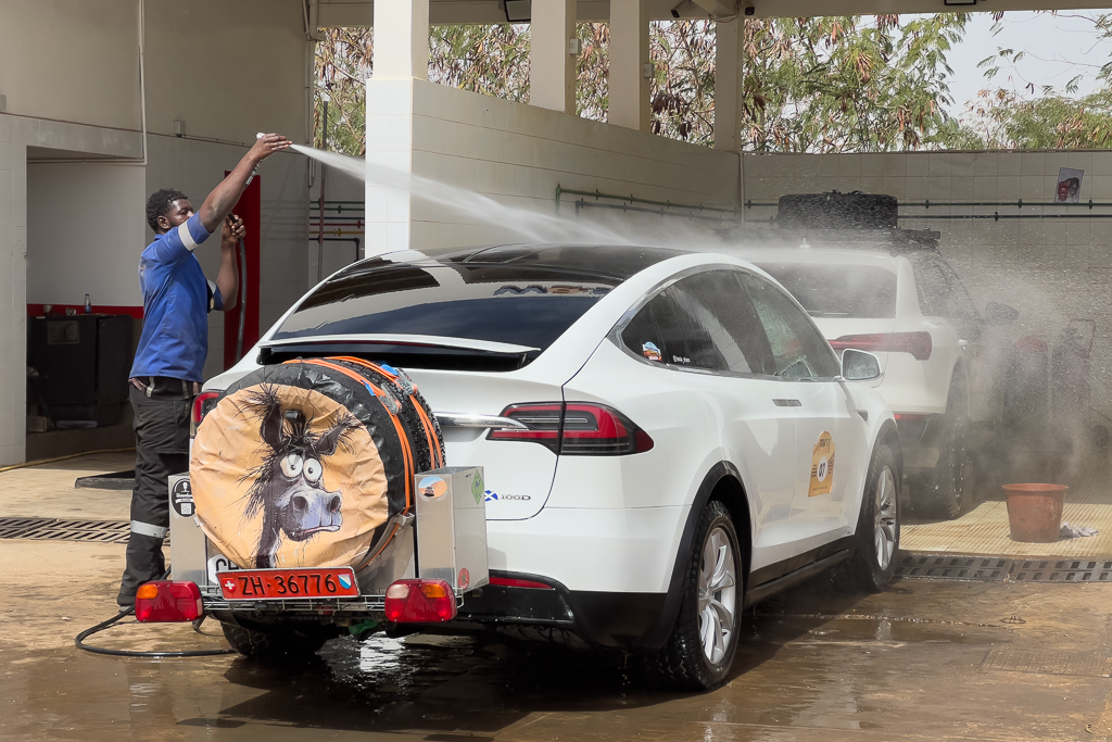 After the dusty roads in the national park, it was time to clean our cars for the photo finish at Lac Rose.