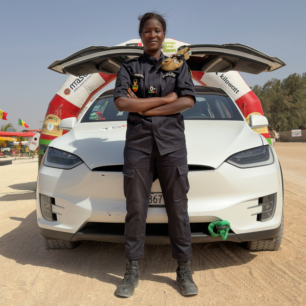A local policewoman had fun posing in front of our electric cars. Afterwards, Hans let her even drive his Tesla for a short ride.