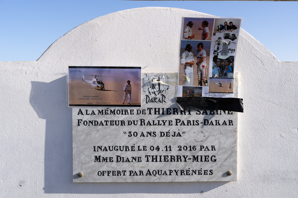 At Lac Rose, there is also an official monument for the founder of the Dakar Rallye Thierry Sabine, who died in a tragic helicopter accident during the rallye in 1986. Of course, we had to visit this place.
