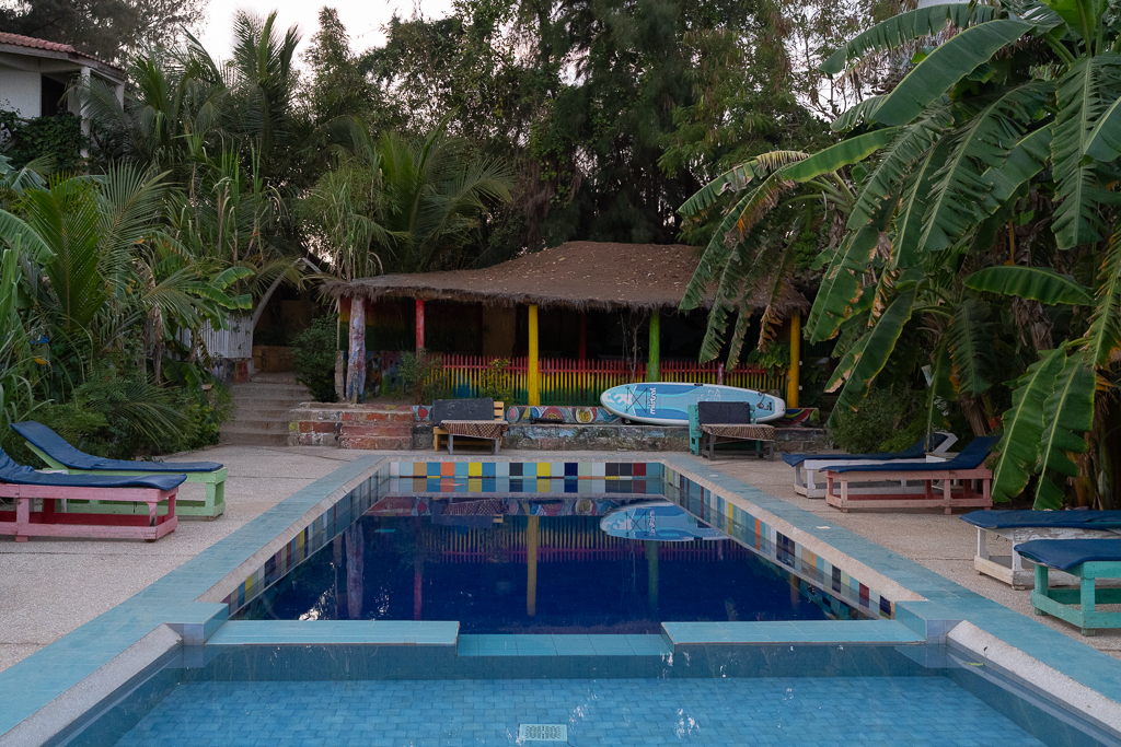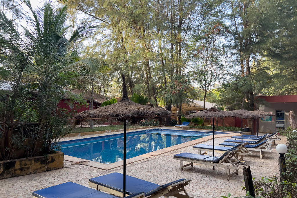 The hotel has clean rooms, a pool, a bar, and secure private parking behind a gate. But the water supply was not very stable at this place. The shower was often not working. Otherwise, it’s a nice place and can be recommended.