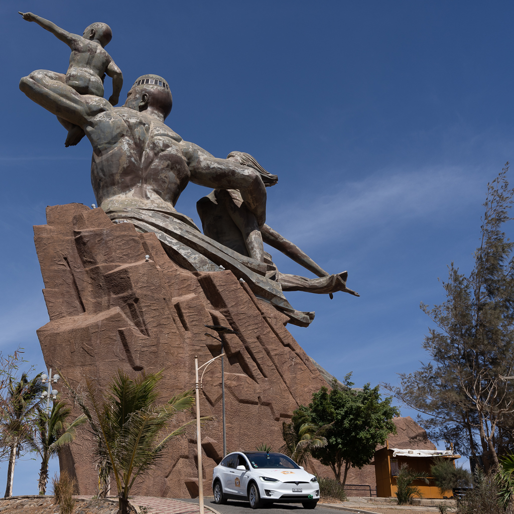 Finally, we reached the national monument in Dakar, and Hans was able to park his Tesla for a few minutes in front of the main staircase while I was taking some pictures.