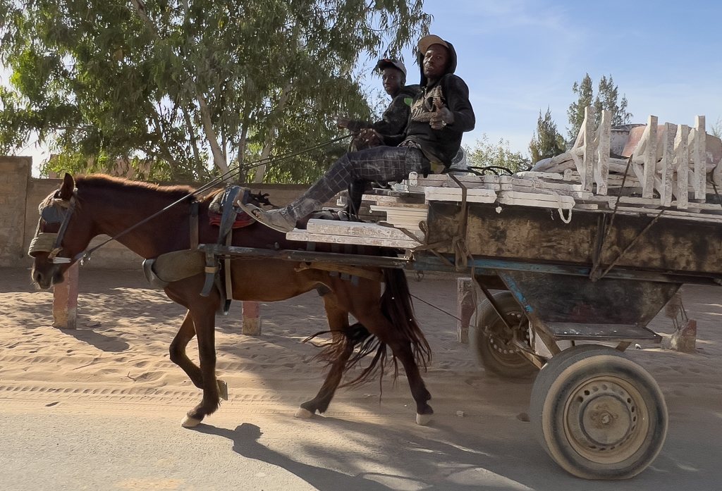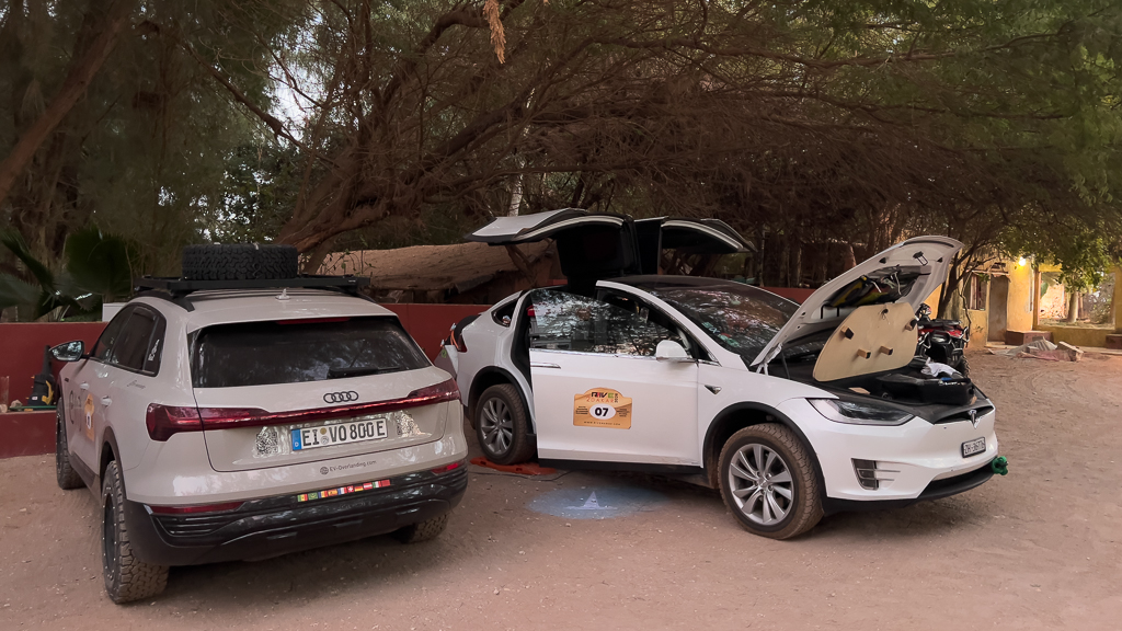 It led us through some extremely small roads directly into the slums on the outskirts of Dakar. Dozens of kids were blocking our way and even jumping on the Tesla. They damaged the spare tire holder of the Tesla and stole the rear license plate. It was all quite stressful, and due to this, I also stopped taking any pictures. But it should all be recorded on video since the camera was running the whole time. Hans stayed very calm during the whole chaos. Respect!
