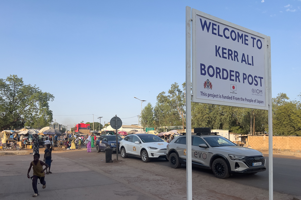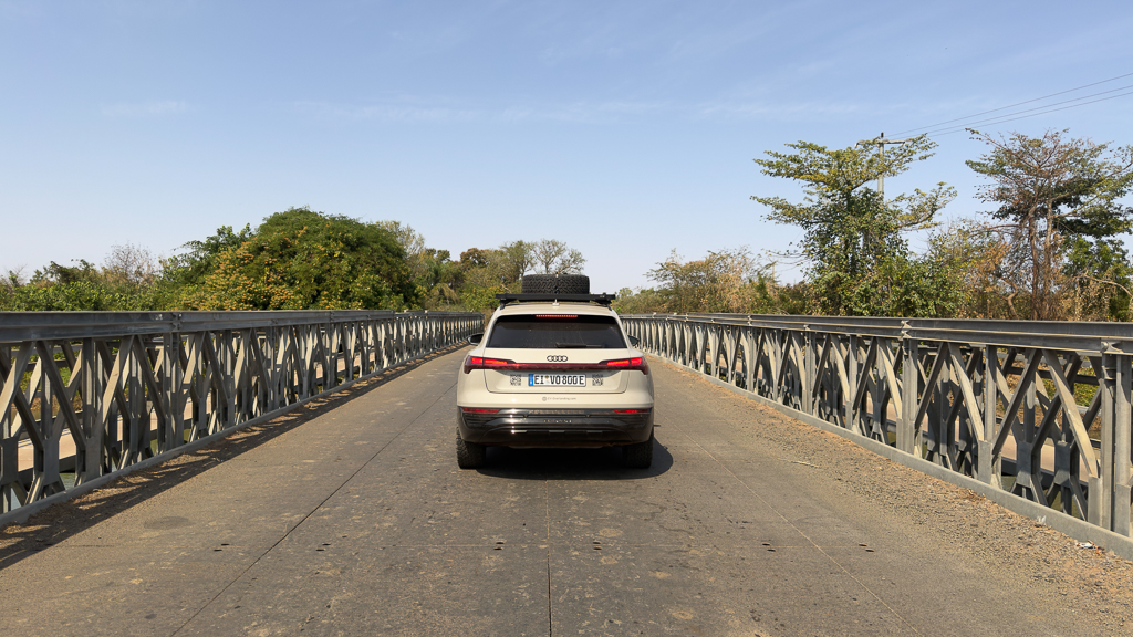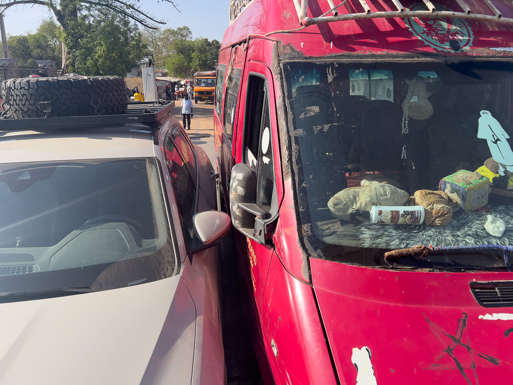 On the way to the border, we had a somewhat strange encounter with a corrupt police officer. At one of the many checkpoints, the officer wanted to see our driver’s licenses, kept them, and then told us that tinted windows are not allowed in Senegal. Of course, this was bullshit (both the Tesla and my Audi only had tinted rear windows directly from the factory). He just wanted money. It was very obvious. He directly told us: „Pay or you won’t get your driver’s licences back“. I know that the best approach is not to pay and wait until he loses interest to not support corruption. But this can sometimes take hours. Since we were already a bit late for the border and he wanted only 6€, we decided to pay.