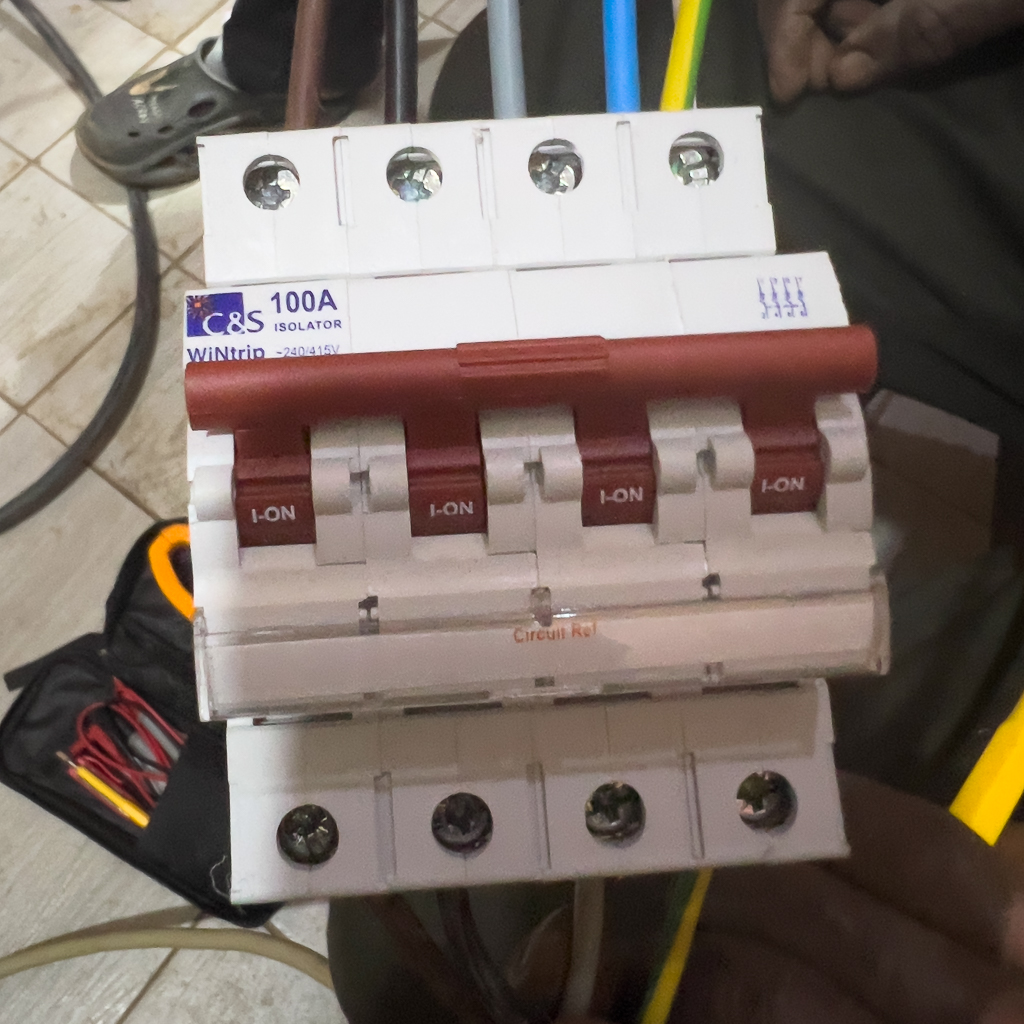 But most importantly, it had an electric installation with 100A 3-phase on the input side. Since Ayoub couldn’t enter The Gambia, I had to take over his job of finding and, if necessary, installing charging infrastructure. I’m not an electrical engineer, but I have a solid engineering background and know the basics. And I got a crash course from Ayoub just a few days ago.