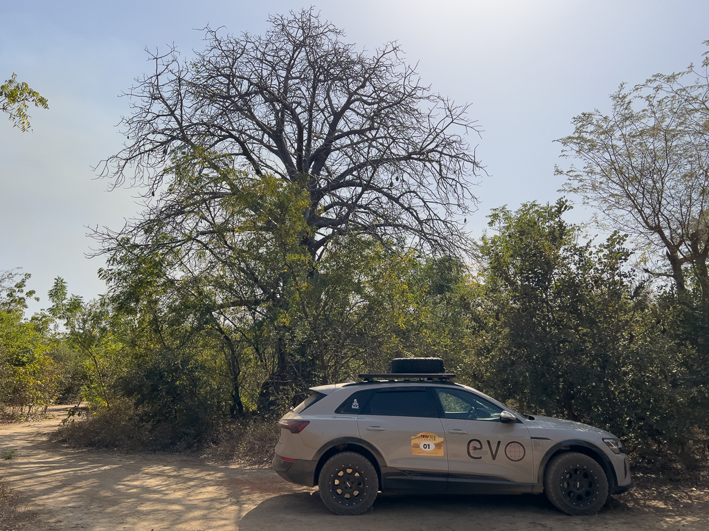 After discussing it with Ayoub, I chose to charge with only 8A 3-phase to not overheat the thin wires of the local installation. But that was sufficient to get my car back to 100% the next morning. We then left The Bridge Hotel and drove along the south bank of the Gambia River to Janjanbureh.