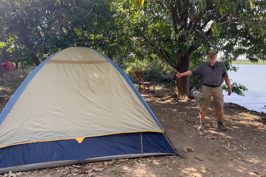 We got three nice tents directly at the river to spend the night.
