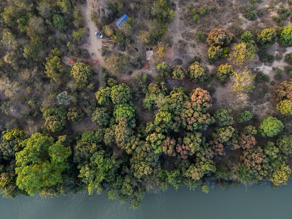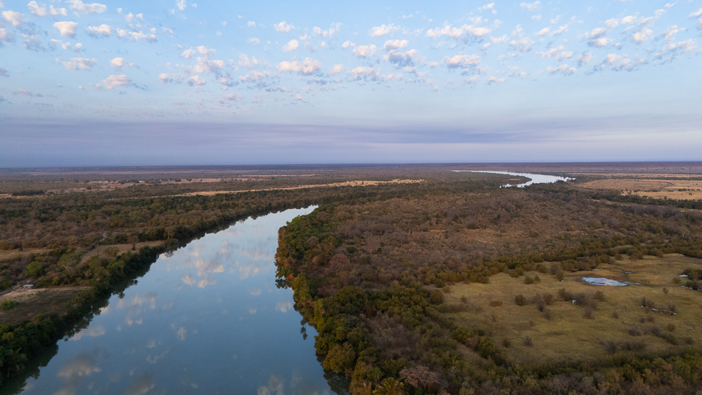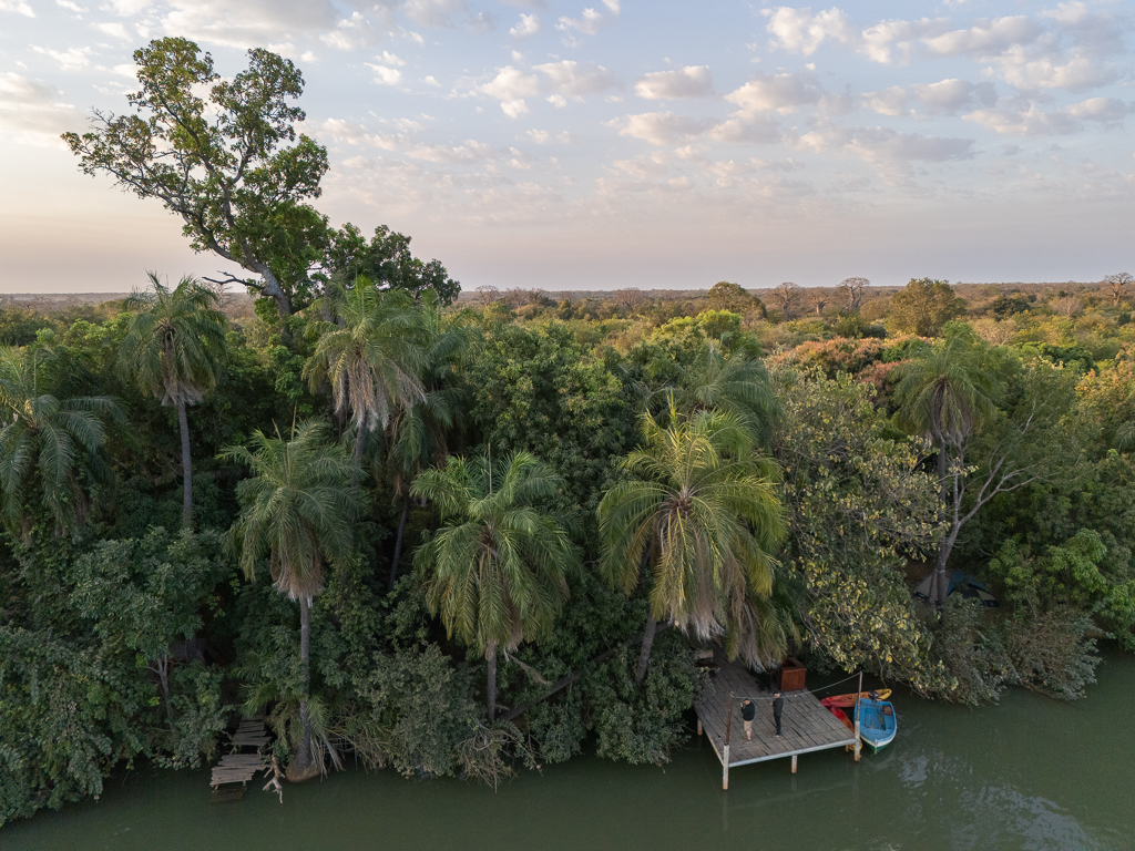 The aerial view also gives a good impression of the Hippo Bush Camp. At the top of the following image, you can see my Audi. Our tents were located under the trees at the edge of the river.