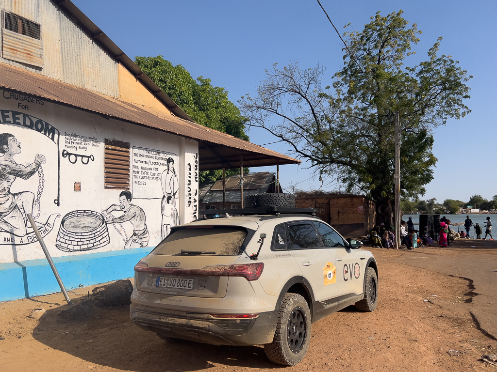 Since we couldn’t charge both cars overnight, we decided that the Tesla would stay at The Bridge Hotel for the next two days (while slowly charging with 6A), and we would travel all together in my Audi to our next destination, Janjanbureh.
