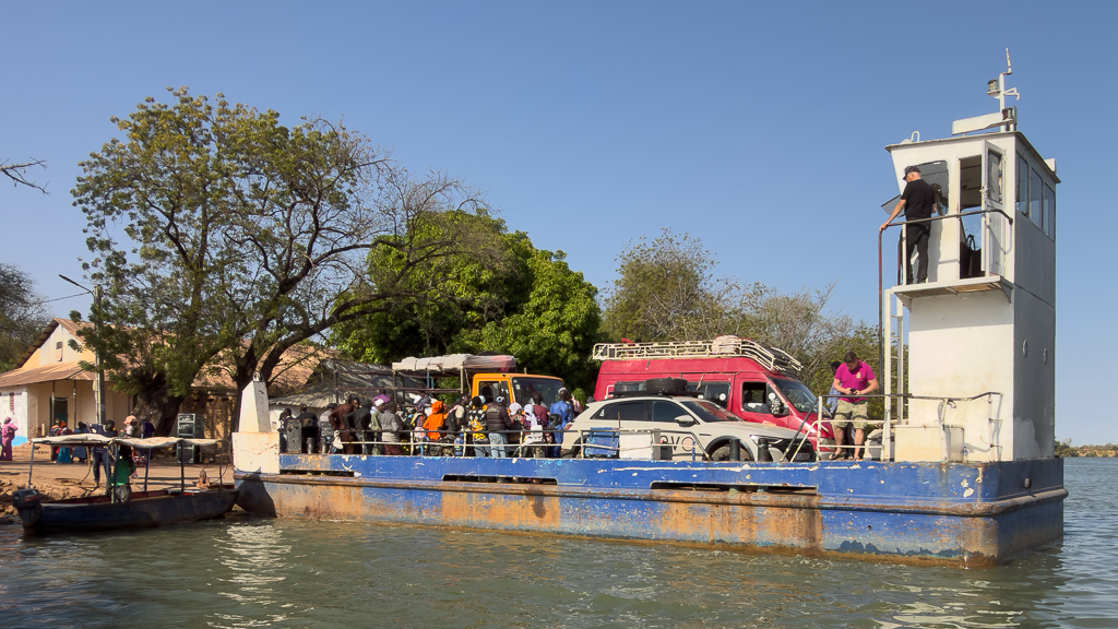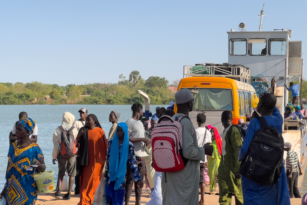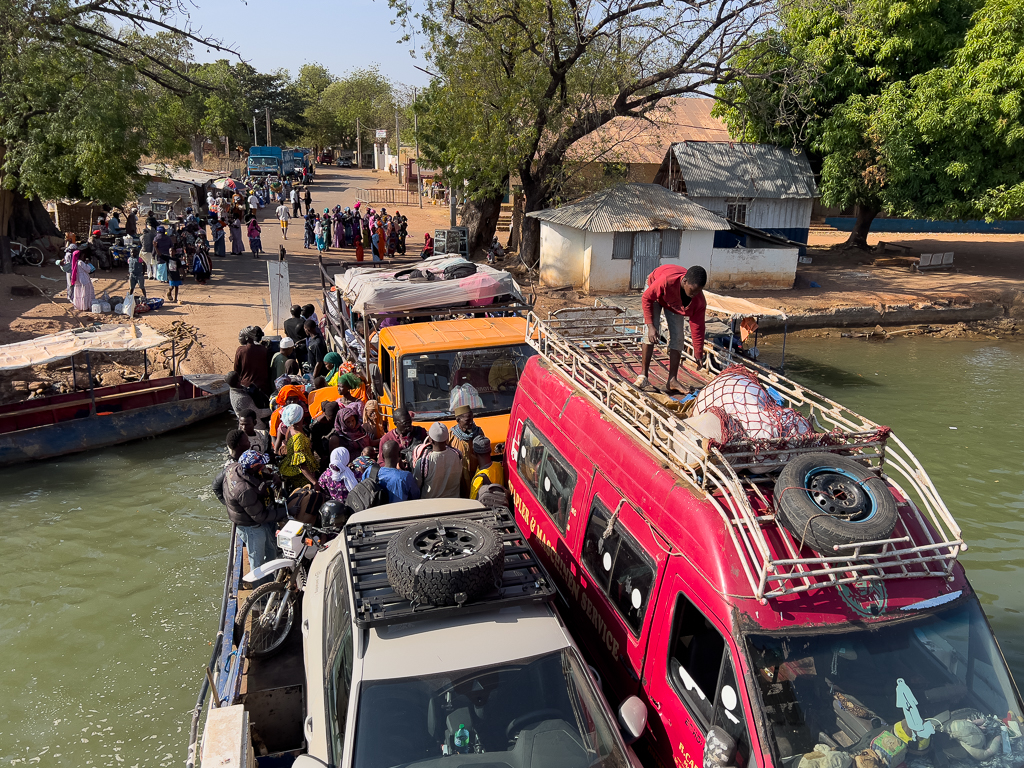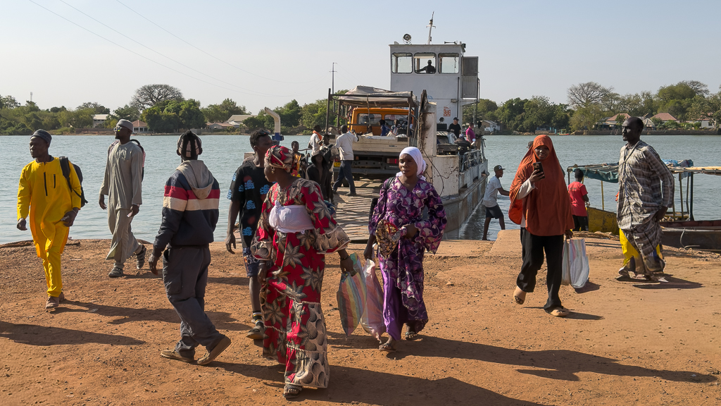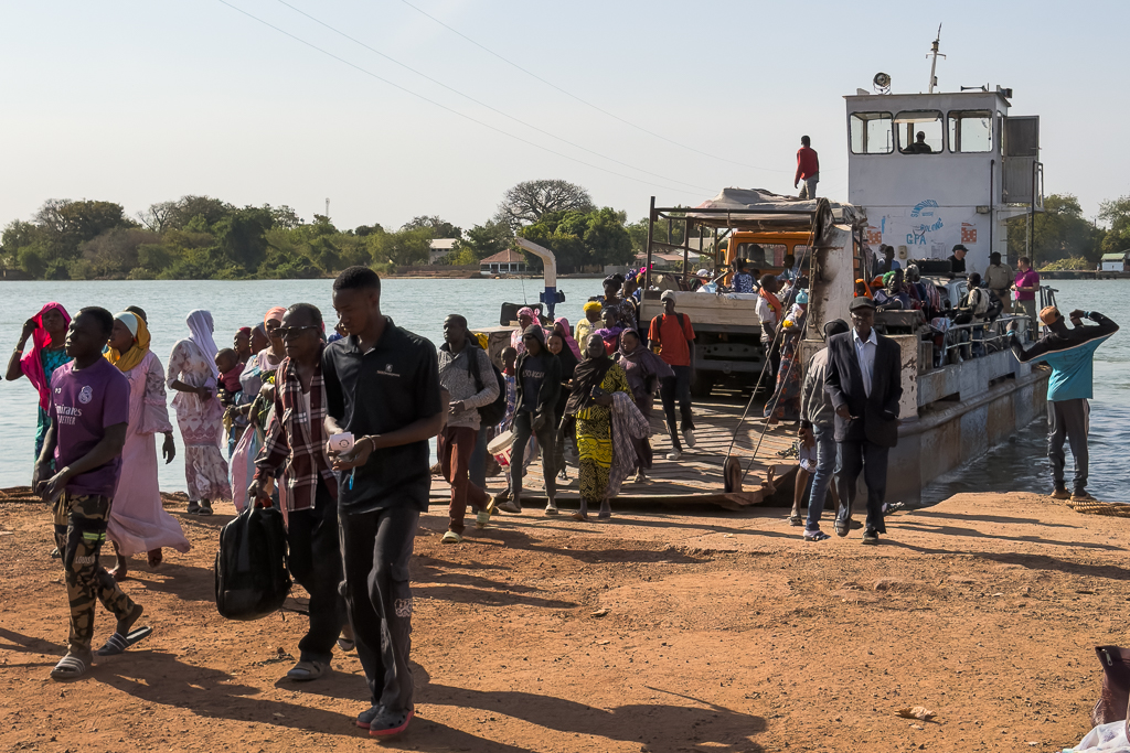 Just a few minutes later, we arrived on the other side of the Gambia River, and the unloading process started.