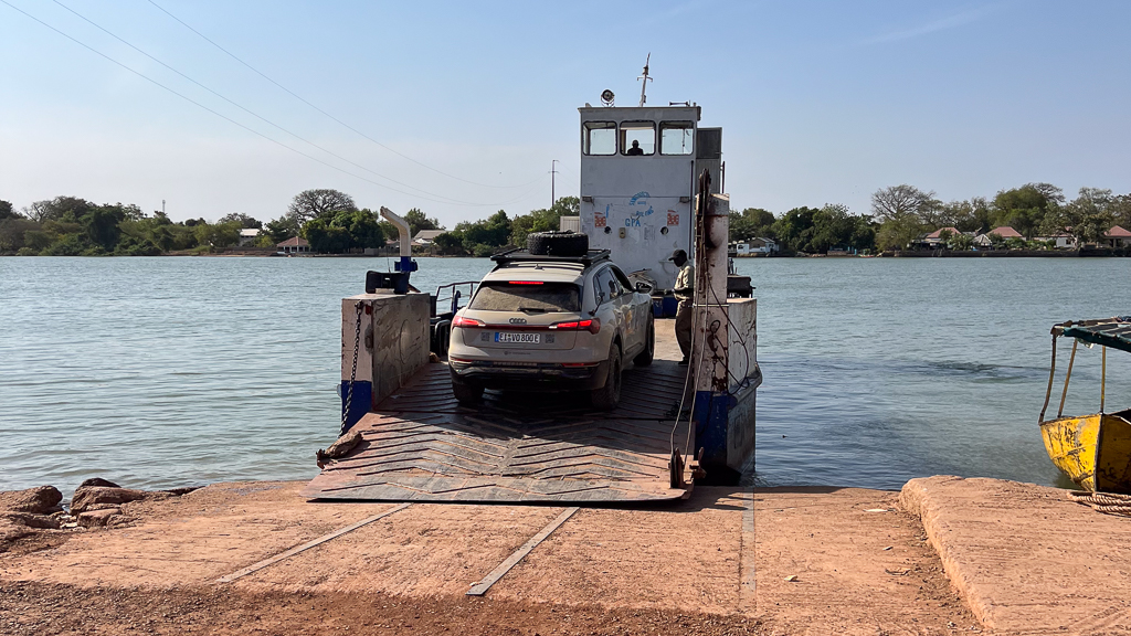 Getting out of Senegal was easy. But when we tried to enter The Gambia, the real problems started. Immigration was no problem for Hans, Silvia, Thomas, and me, with our European passports. But Ayoub has a Moroccan passport. The official rule is very clear: Moroccans can enter The Gambia visa-free. But they insisted at the border that he would need a visa. We even showed them the official government website where the rules are clearly stated. But the chief at the immigration just said that he makes the rules, and what some government in the capital says doesn’t interest him. So there was no chance for Ayoub to enter. Silvia and Ayoub had to turn back to Senegal. But since our electric cars were nearly empty and the next electricity was in Gambia, we had to continue.